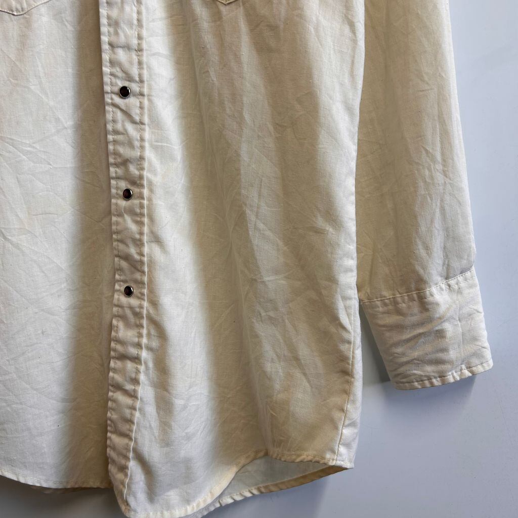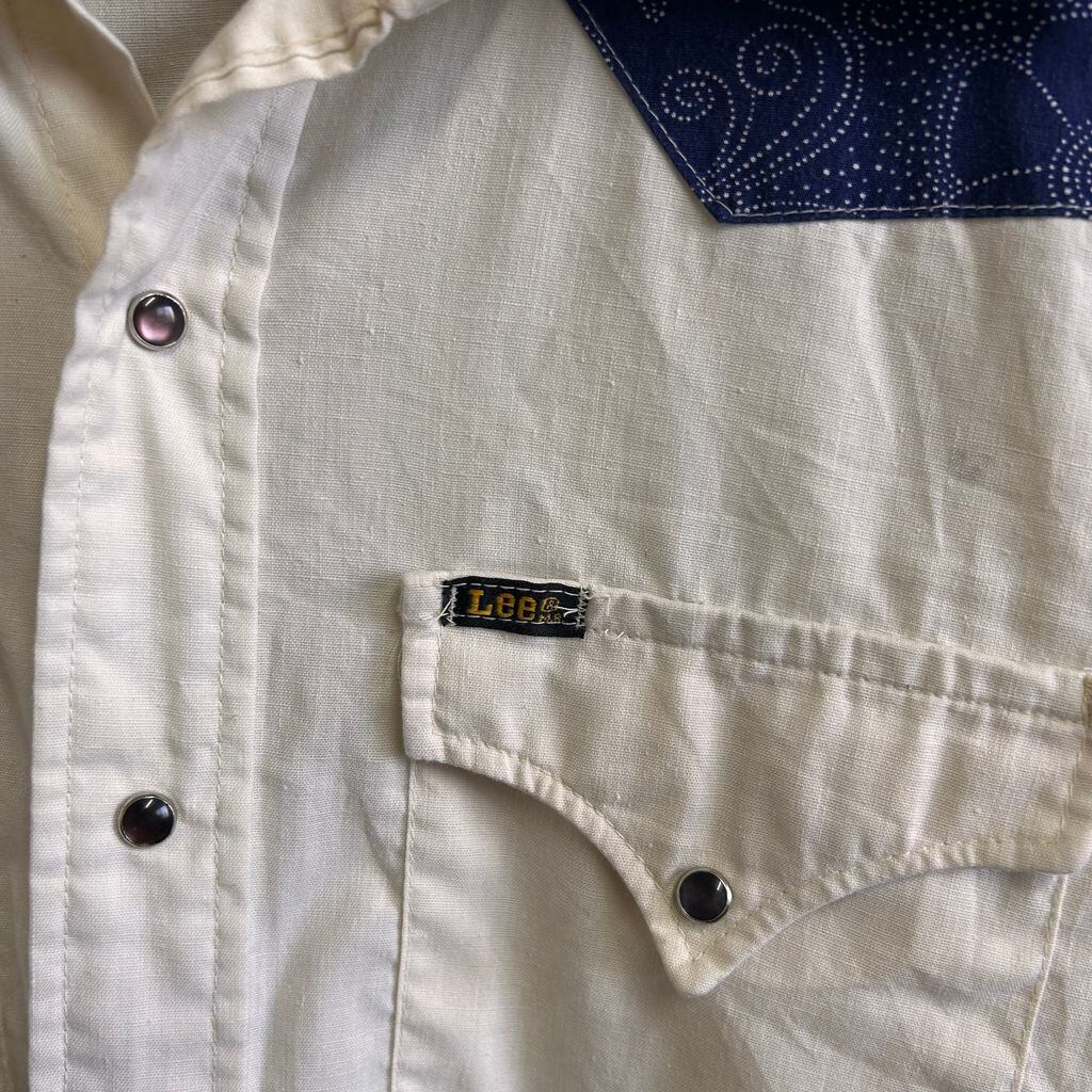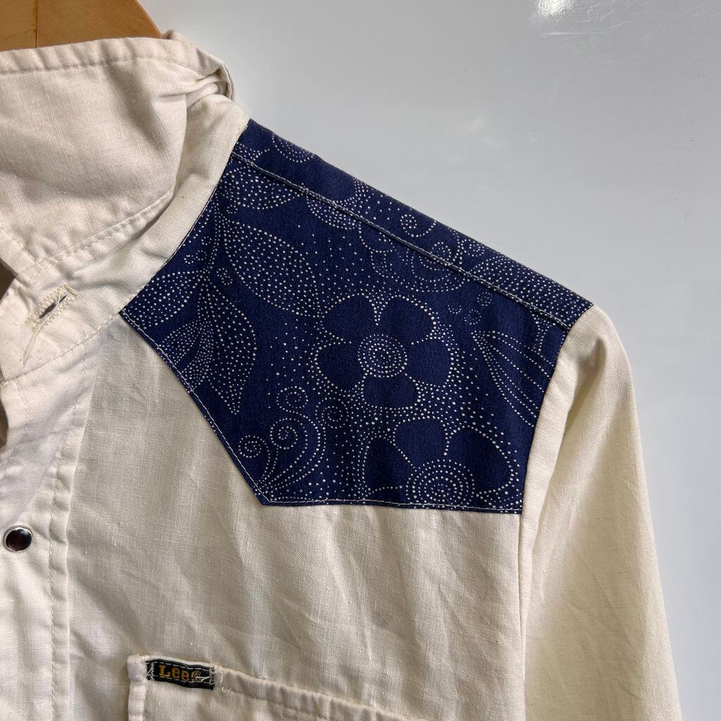70s vintage USA製 Lee Western shirts ウエスタンシャツ スナップボタン デカ襟 白 青 NO.T327
