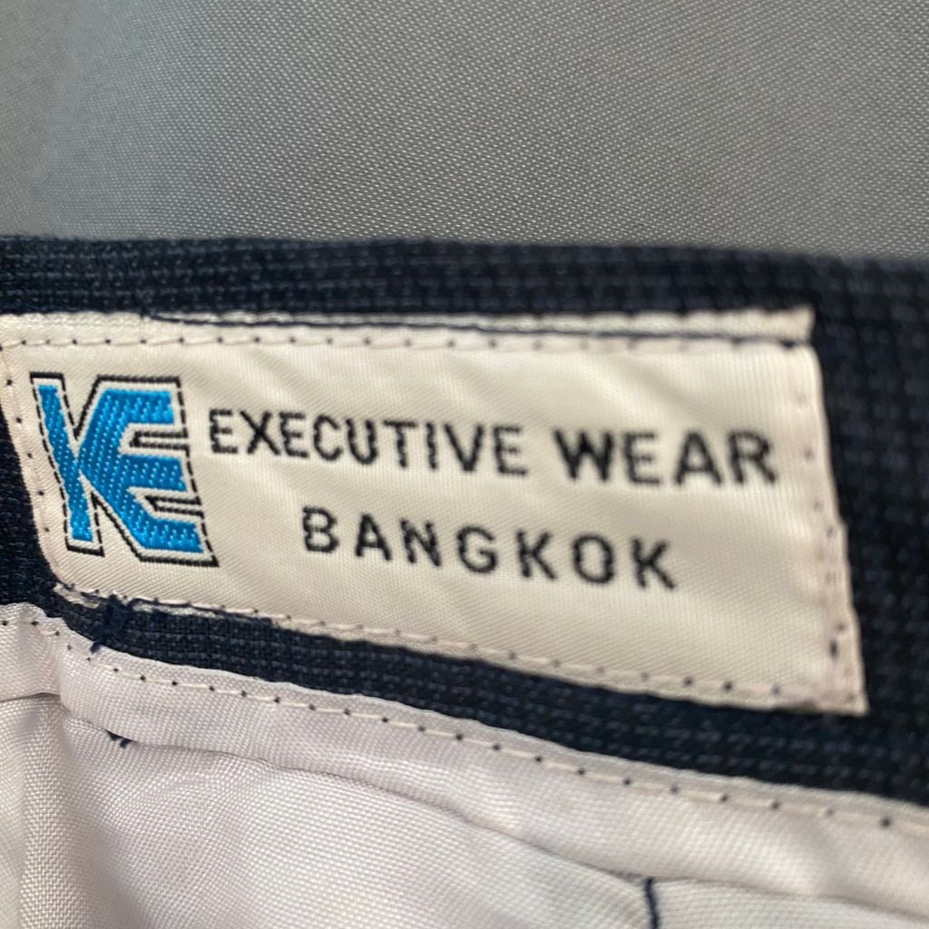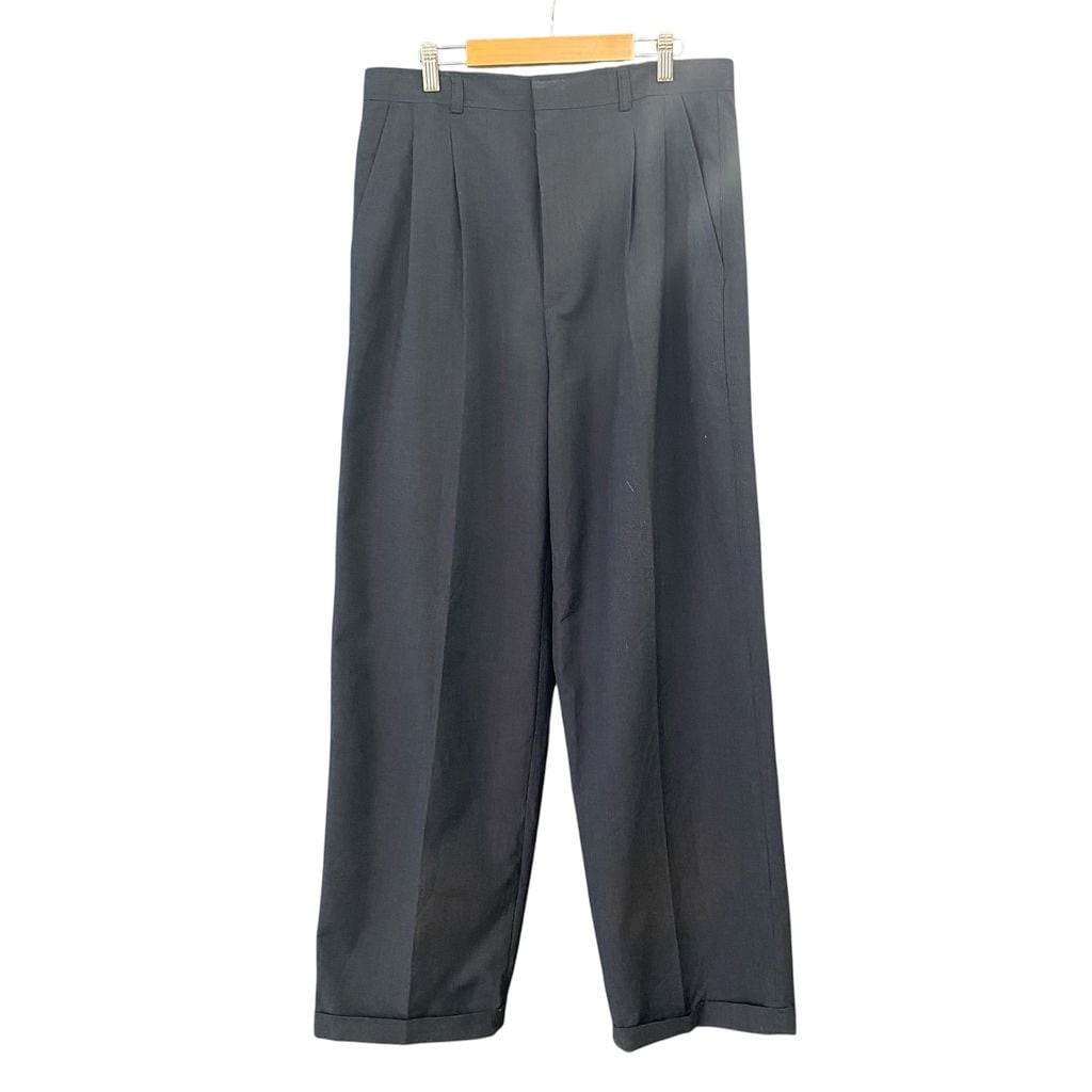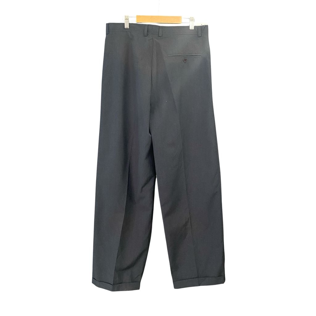 EXECUTIVE WEAR BANGKOK オーダーメイド 2タック ワイドスラックス 格子柄 裾ダブル チャコールグレー サイズ34 No.S225