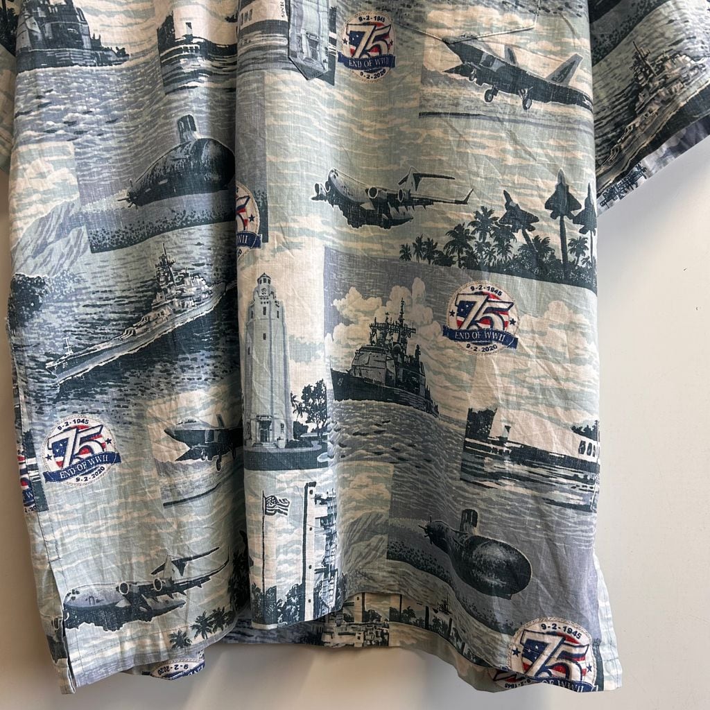 REYN SPOONER レインスプーナー ボタンダウンシャツ アロハシャツ 半袖シャツ スプーナークロス 水色 SIZE 2XL NO.T341