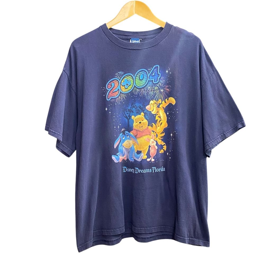 00s 2004年 Disney ディズニー プーさん ティガー ピグレット イーヨー Tシャツ Disney Dreams Florida ネイビー サイズXL No.S225