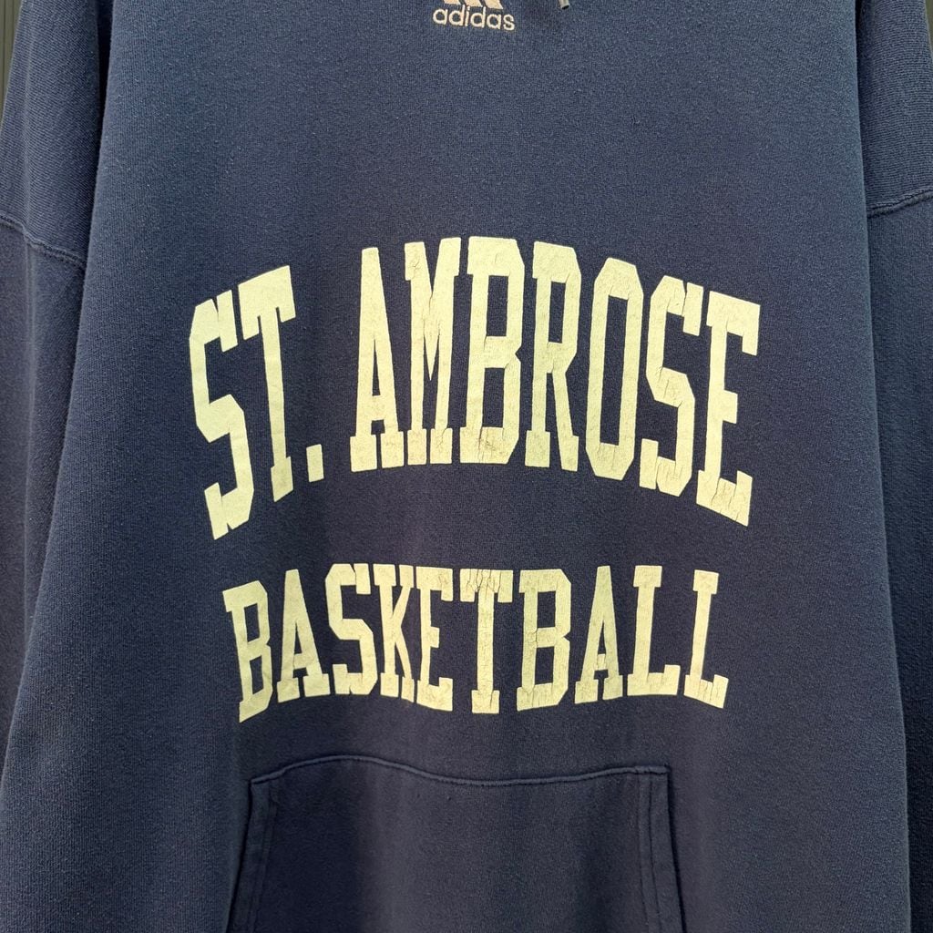 90s~ adidas プルオーバーパーカー フーディ カレッジロゴ 茄子紺 フェード No.A052