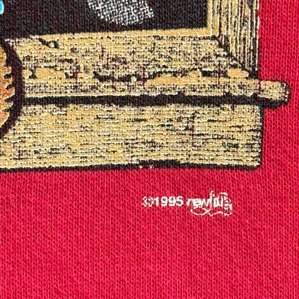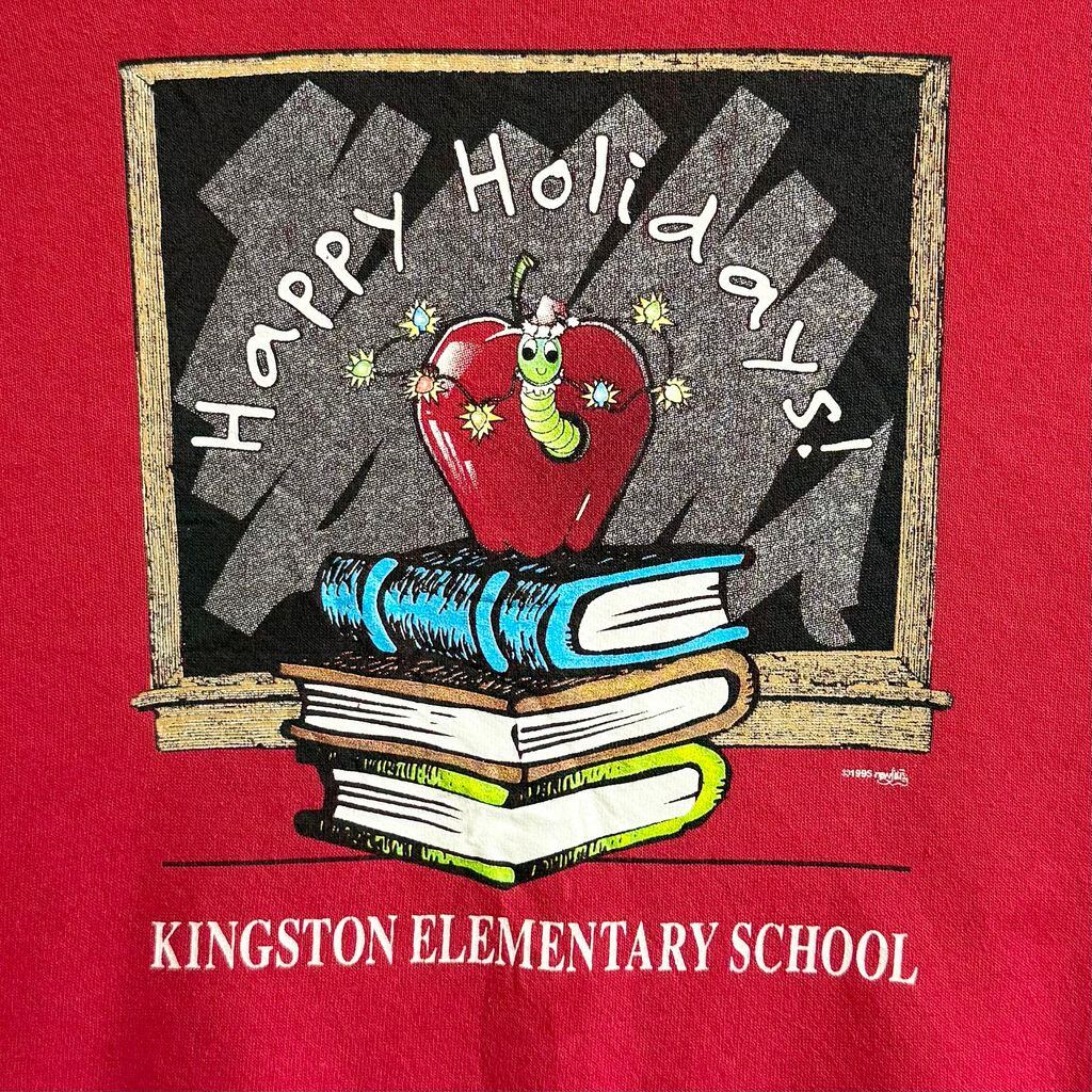 90's vintage ビンテージ USA製 Lee リー フロントプリント りんご イモムシ 本 黒板 アメカジ トレーナー スウェット 裏起毛 赤 レッド Mサイズ No.P413