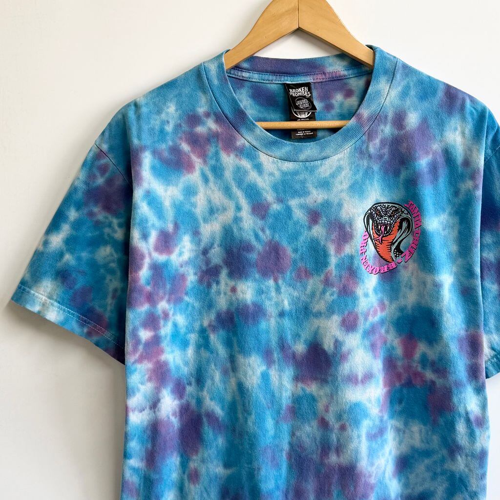 BROKEN PROMISES サンタクルーズ SANTA CRUZ タイダイ柄 キングコブラ 半袖Tシャツ 水色×多色 Mサイズ No.P430