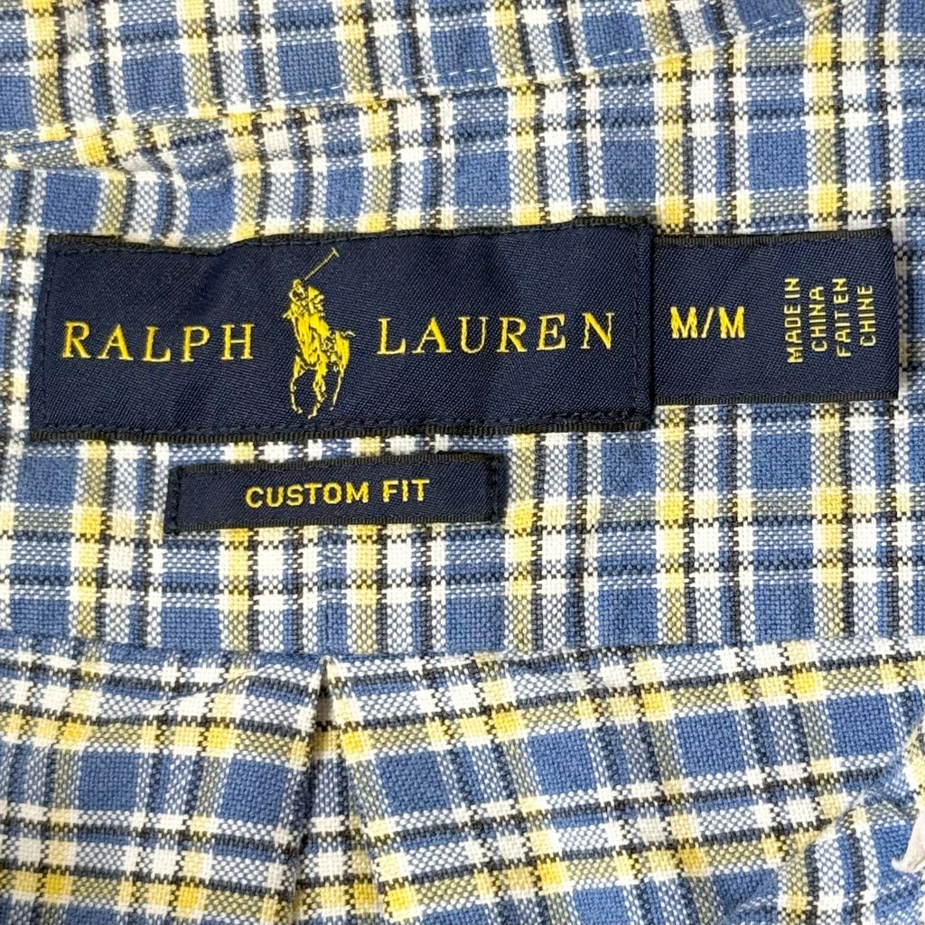 RALPH LAUREN ラルフローレン ボタンダウンシャツ コットンシャツ チェック柄 長袖シャツ ワンポイントロゴ 刺繍 青×白×黄色×黒 Mサイズ No.P434