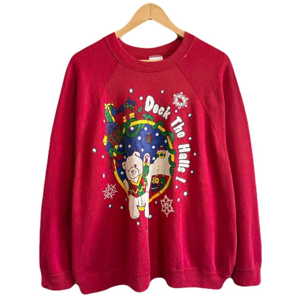 USA製 Tultex タルテックス クマ イラスト クリスマス プレゼント ラグランスウェット トレーナー 赤 レッド 3Xサイズ No.P454