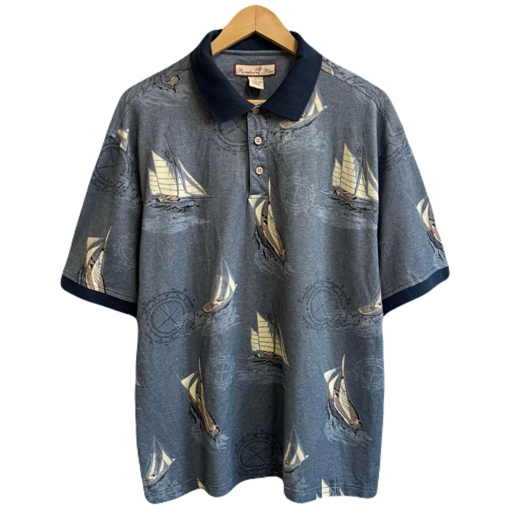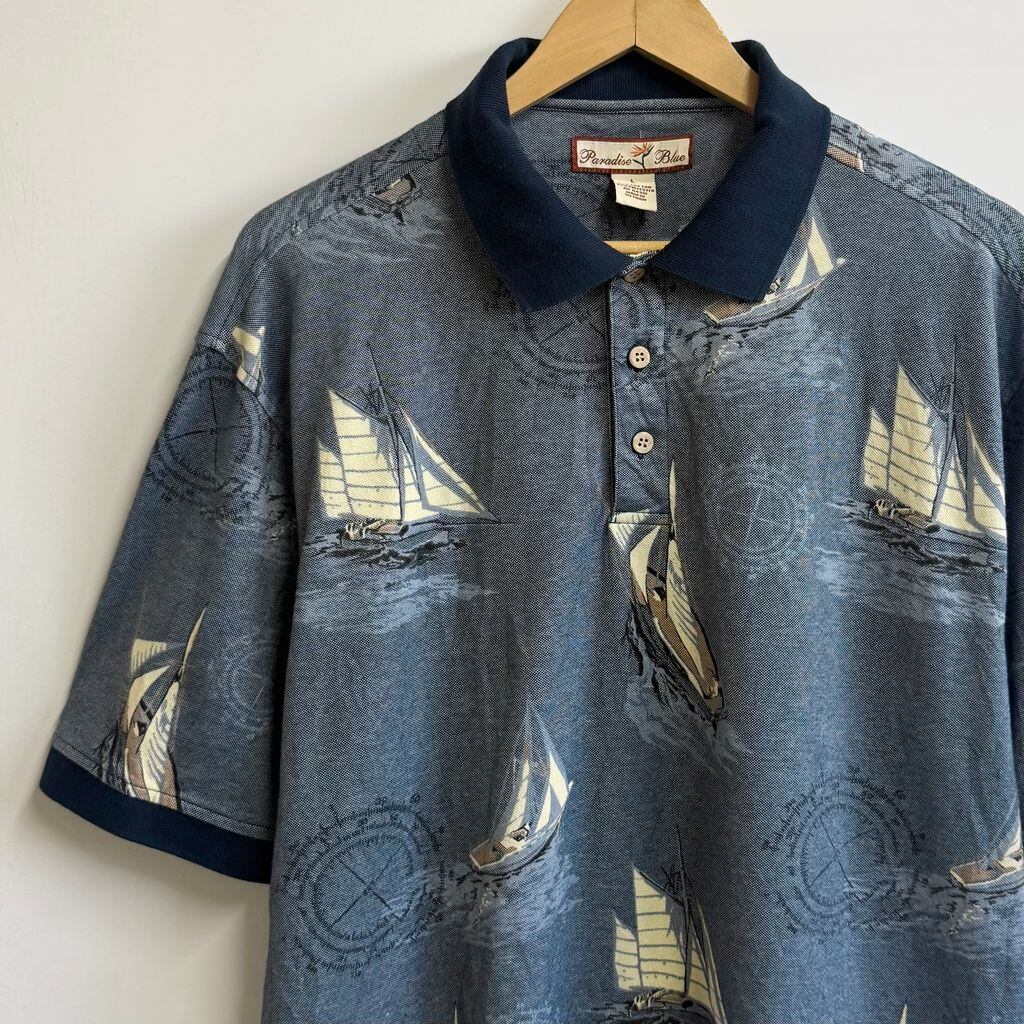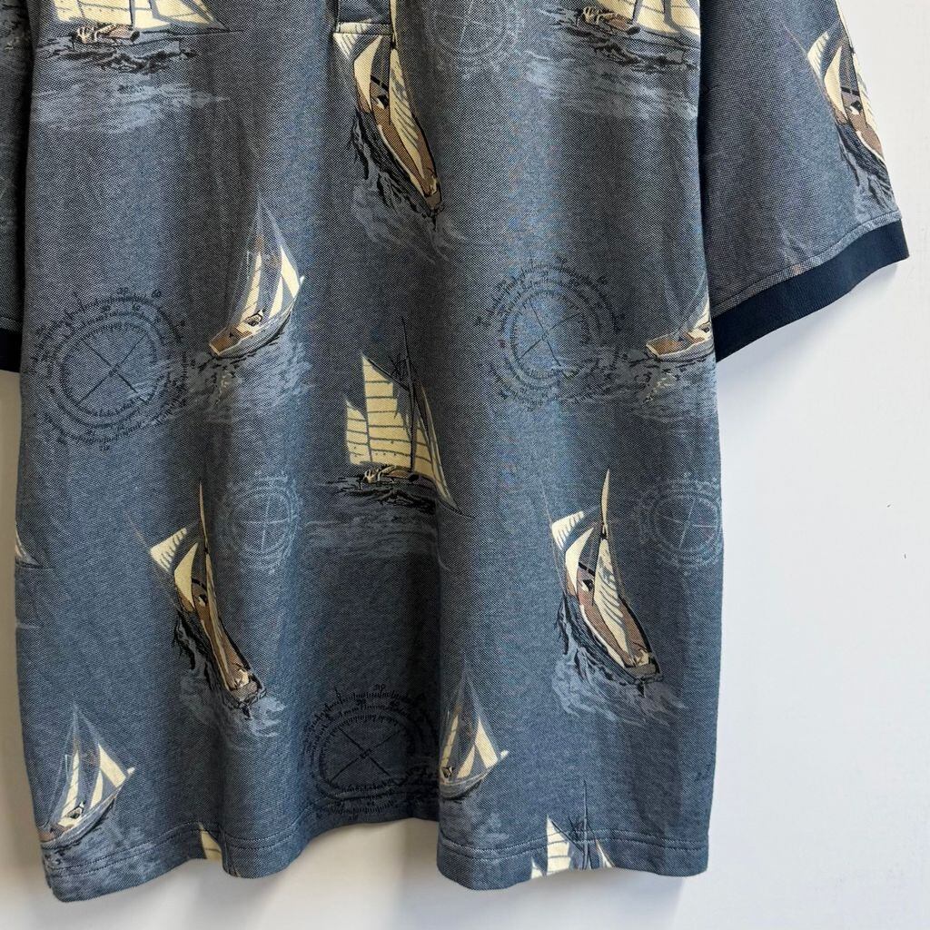 Paradise Blue ポロシャツ 半袖 ヨット柄 総柄 Lサイズ No.P459