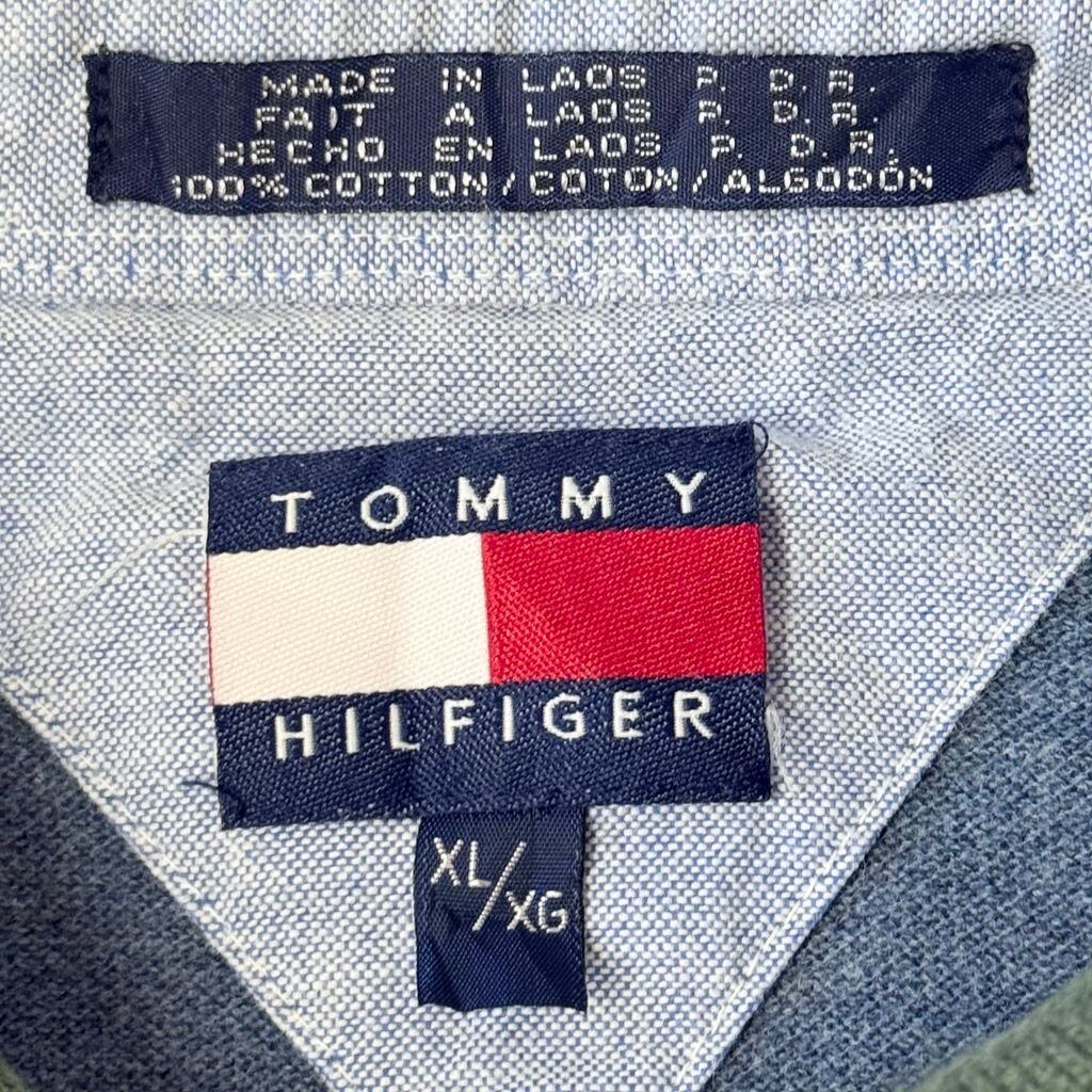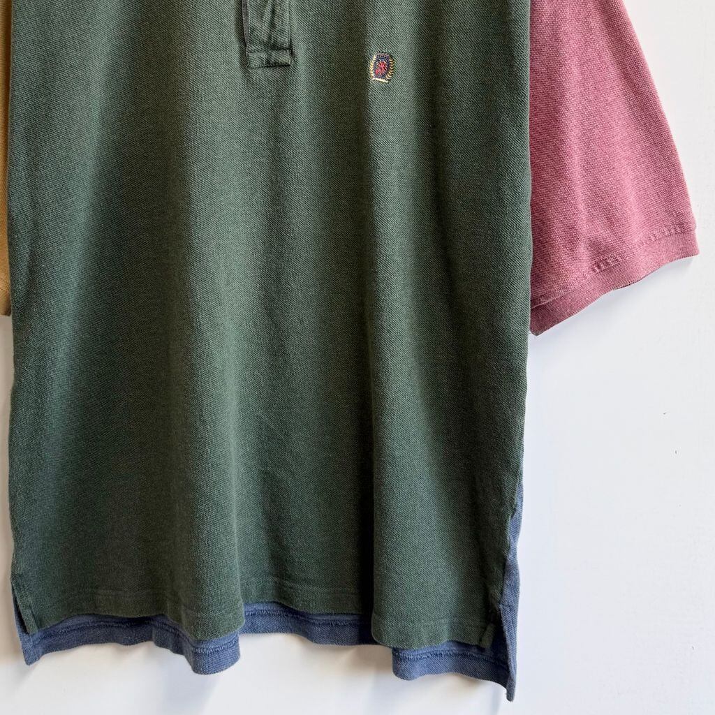 TOMMY HILFIGER トミーヒルフィガー ポロシャツ 半袖 カラーブロック ワンポイントロゴ 刺繍 カーキ×イエロー×レッド×ブルー XLサイズ No.P476