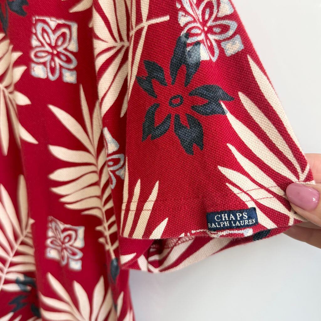 CHAPS チャップス RALPH LAUREN ラルフローレン ポロシャツ 半袖 ボタニカル 花柄 総柄 赤×多色 Mサイズ No.P477