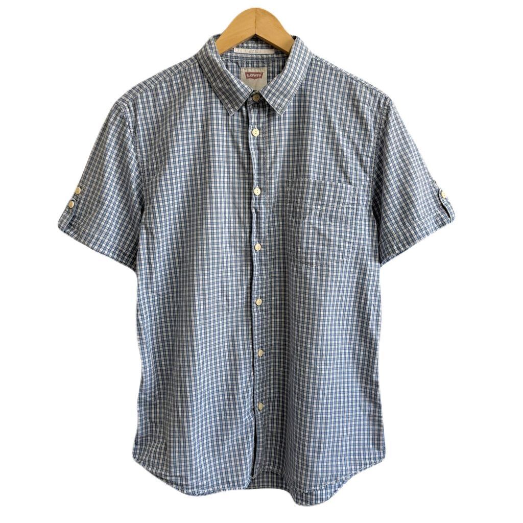 Levi's リーバイス コットンシャツ チェック柄 ポケット付き 半袖シャツ 青×白×紺 No.P480