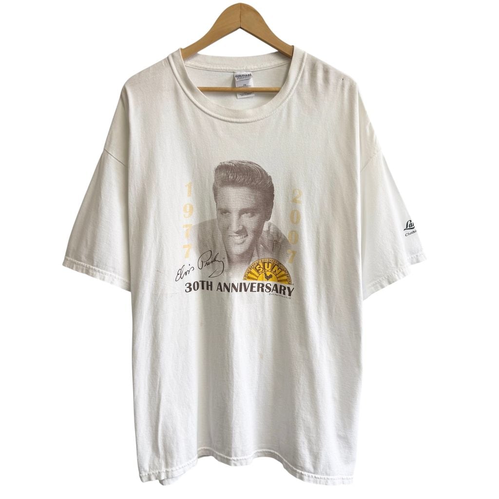 GILDAN ギルダン 2007 エルヴィスプレスリー ELVIS PRESLEY 30周年記念Tシャツ 半袖Tシャツ 白 2XLサイズ No.P500