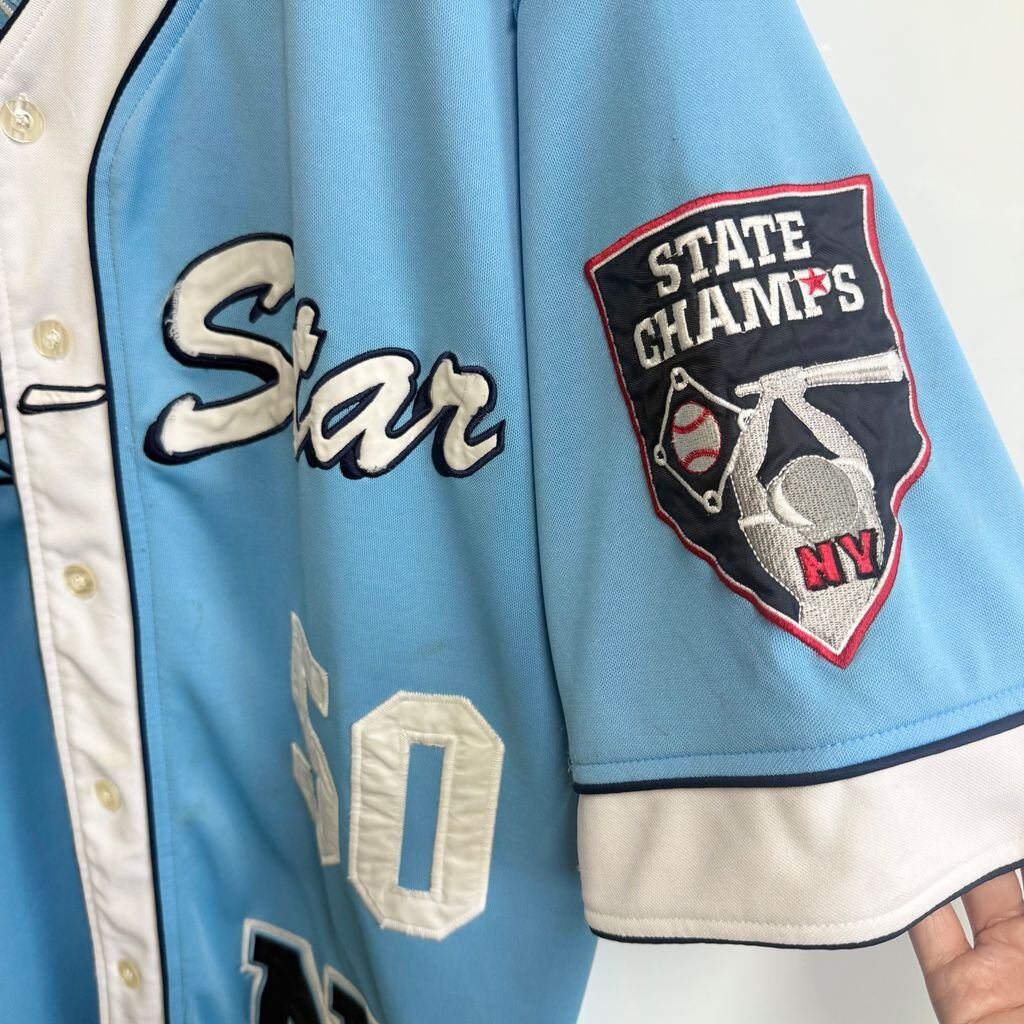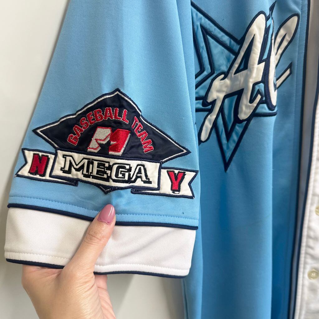 BUCKER All star 50 ベースボールシャツ ナンバリング 水色×白×紺 XLサイズ No.P516