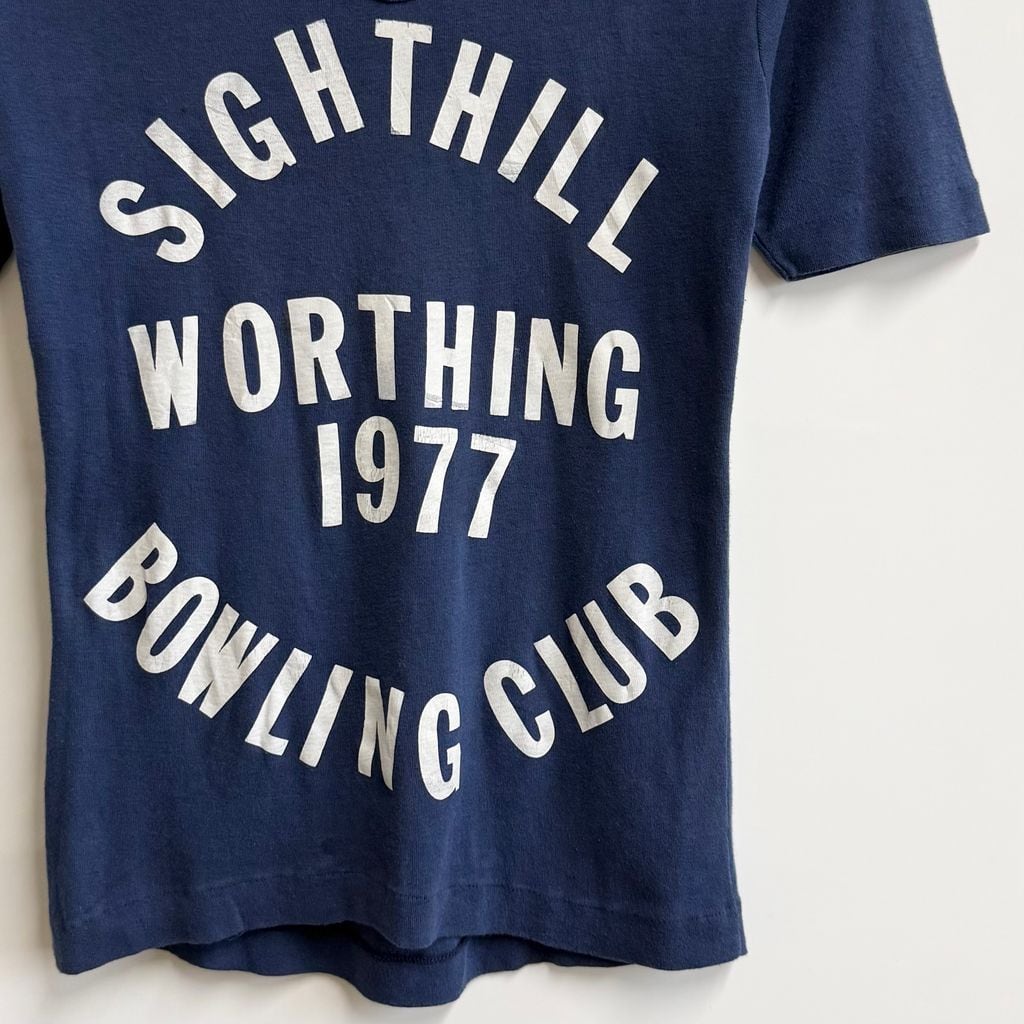ボウリングシャツ 襟付き プルオーバー 紺 ネイビー Mサイズ No.P518