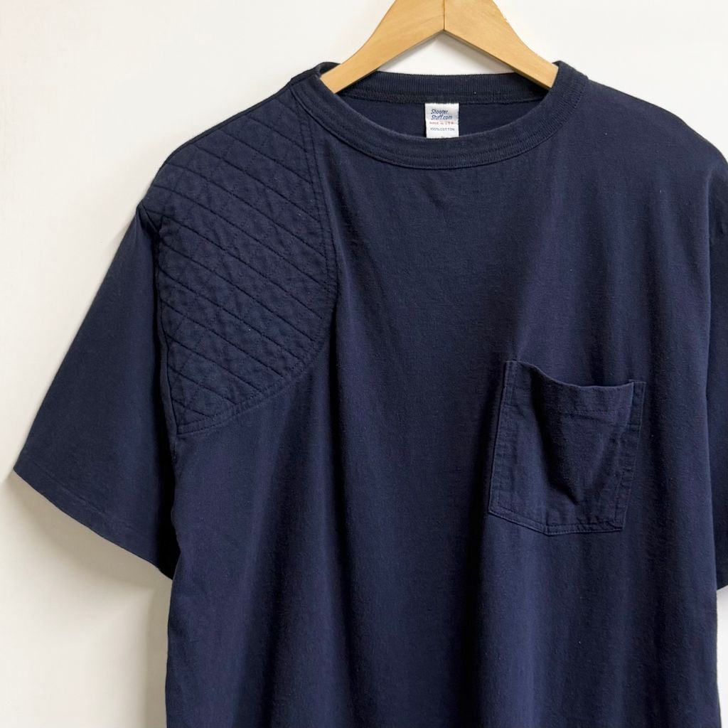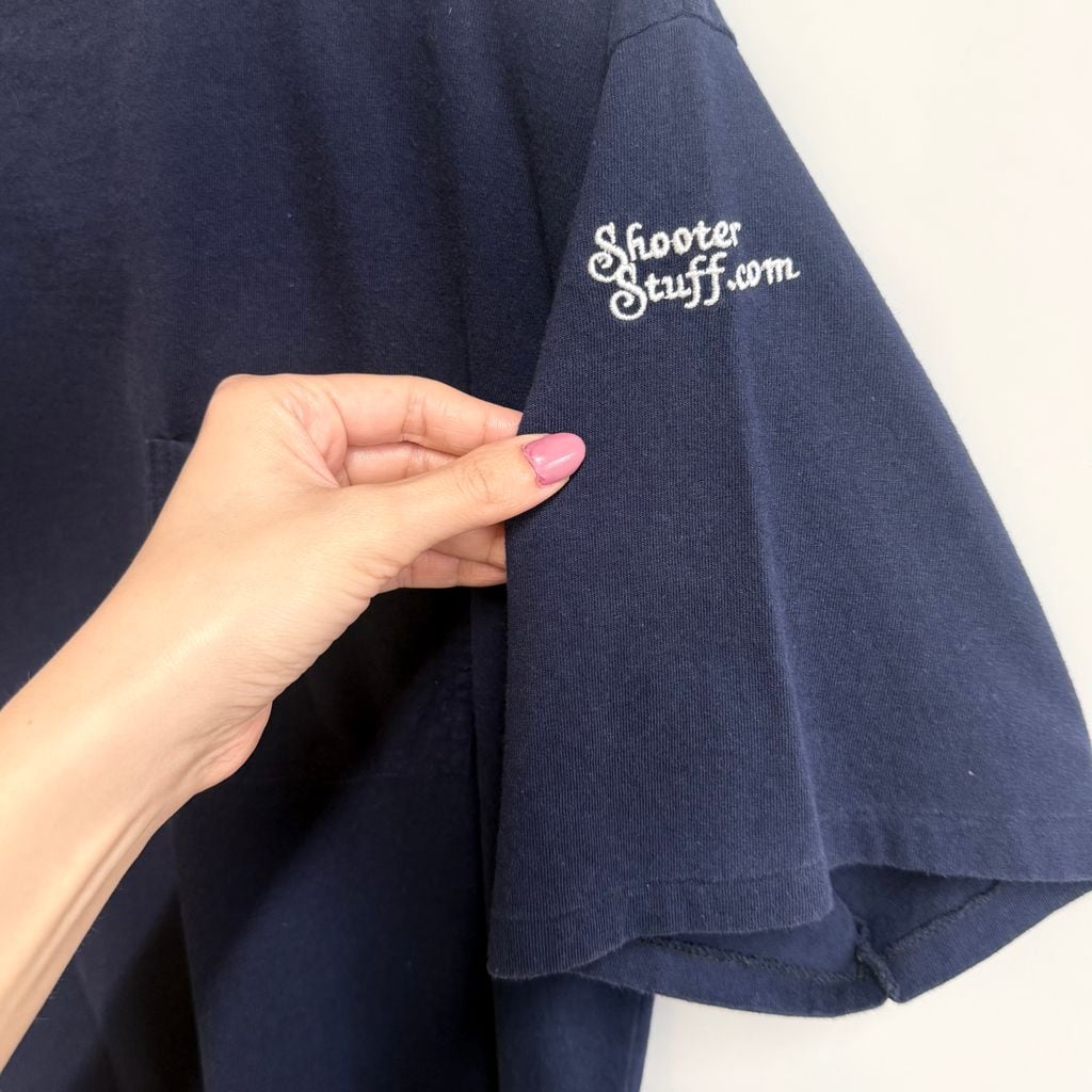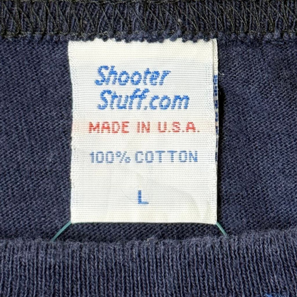 USA製 Shooter Stuff.com シューティングシャツ キルティングパッチ 刺繍 シングルステッチ 半袖Tシャツ 紺 ネイビー Lサイズ No.P522