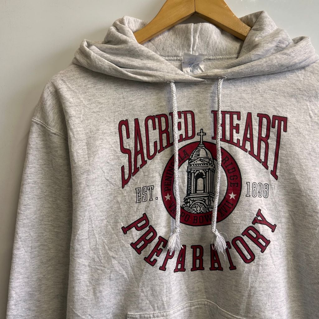 PORT COMPANY ポートカンパニー カレッジロゴ スウェットパーカー フロッキープリント グレー SIZE M NO.T392