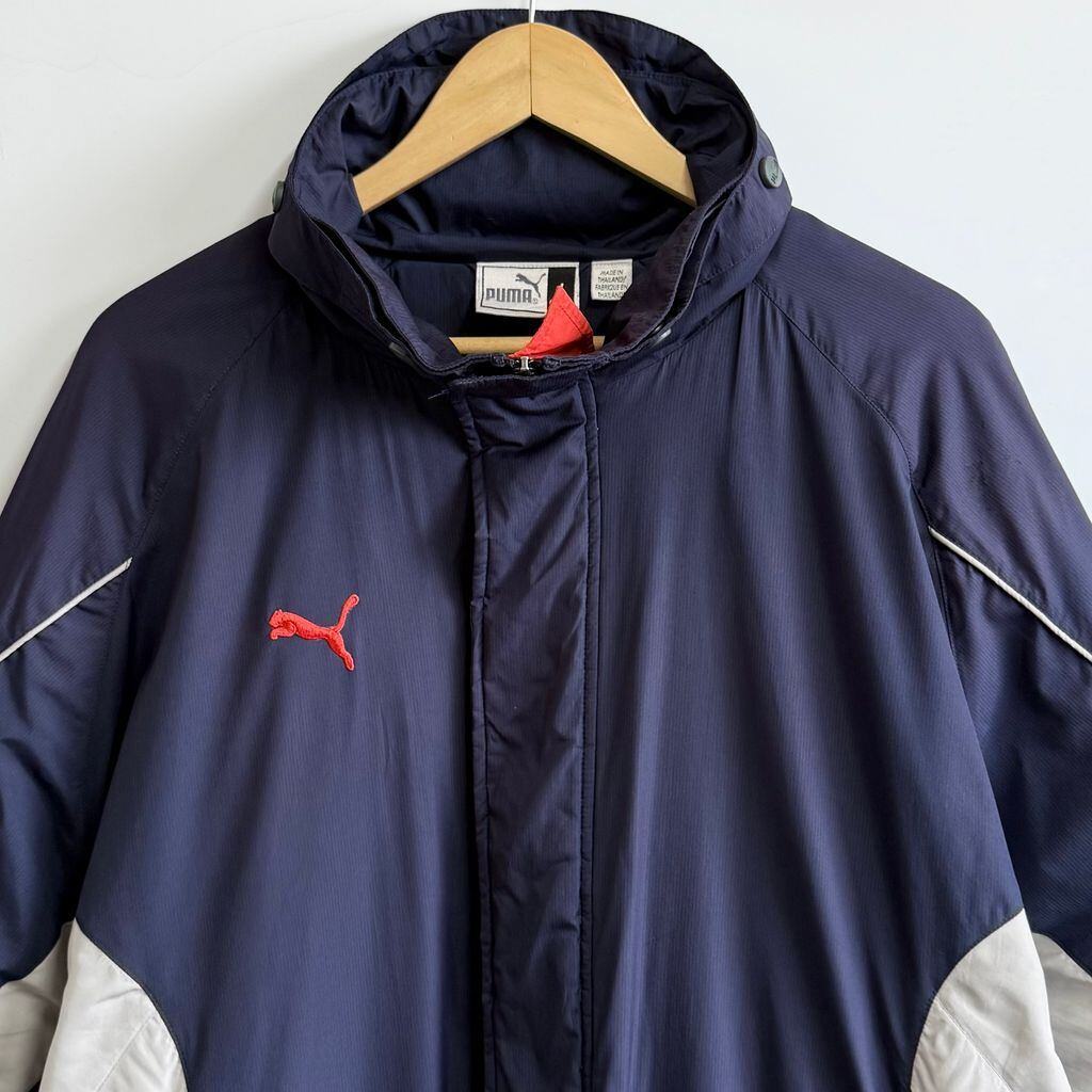 PUMA プーマ 中綿ナイロンジャケット フード付き フリースライニング ネイビーパープル Lサイズ No.P534