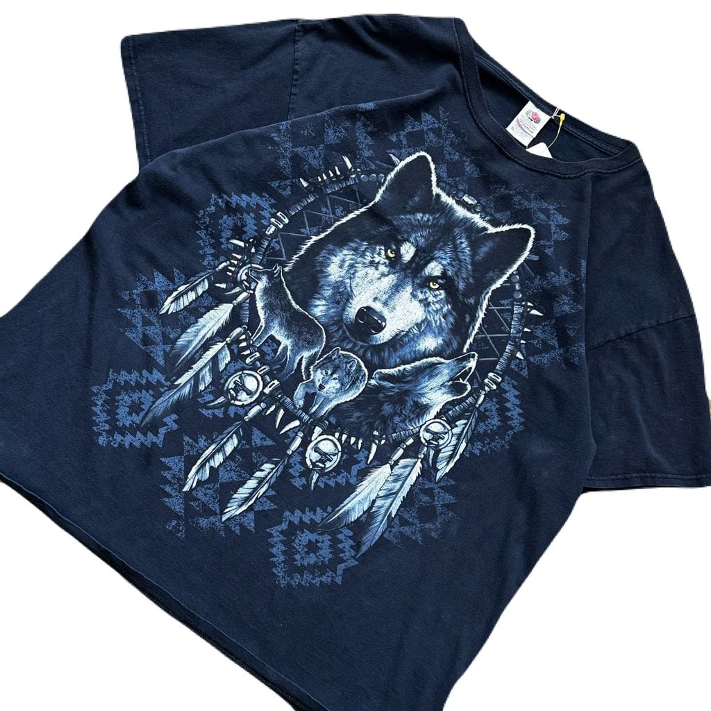 FRUIT OF THE LOOM フルーツオブザルーム 狼 オオカミ ドリームキャッチャー アニマル Tシャツ 黒 XLサイズ No.EA390