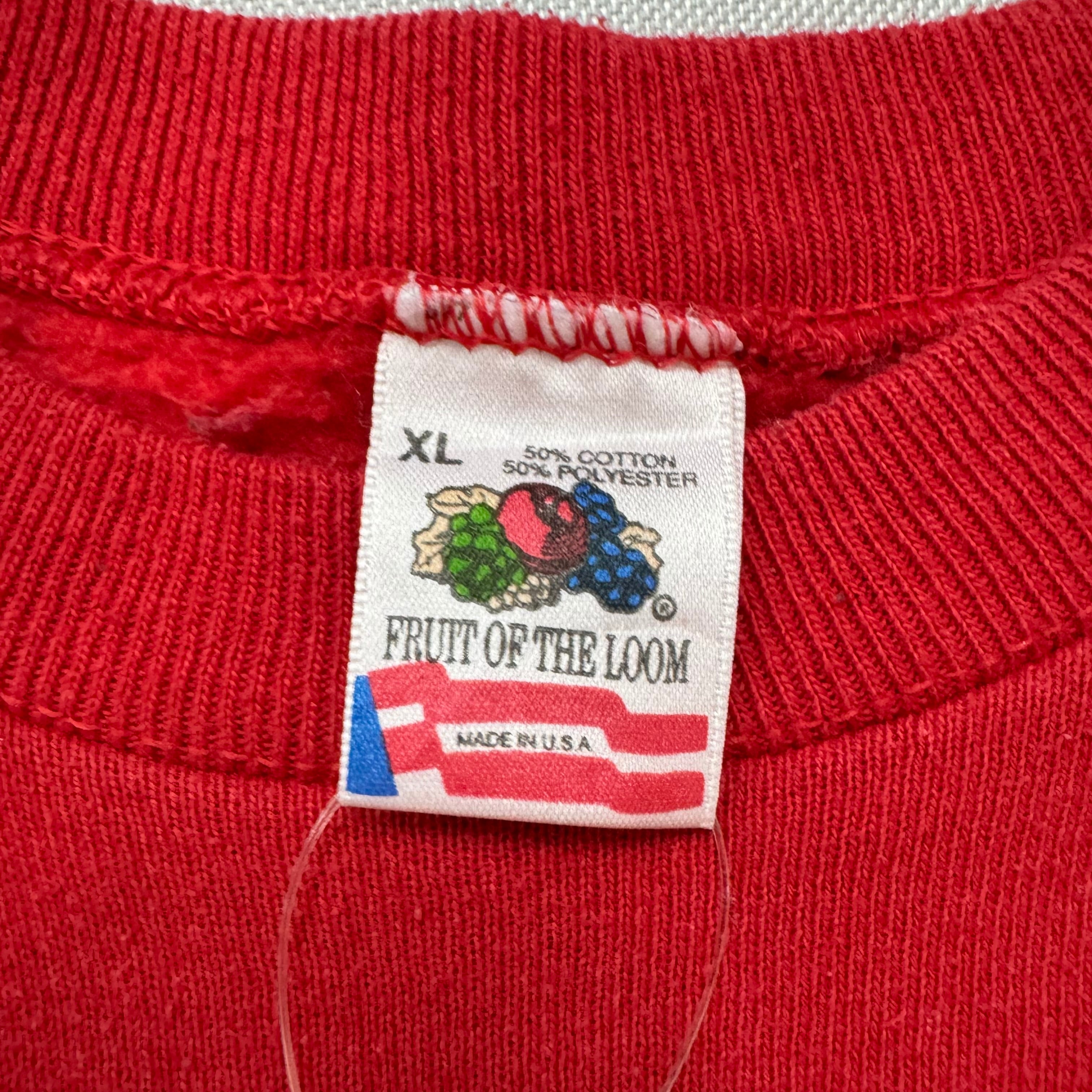 USA製 90s FRUIT OF THE LOOM 1991 WORLD QUARTER HORSE SHOW フルーツオブザルーム ヴィンテージ 馬 アニマル プリント ラグランスウェット 赤 XLサイズ No.E048