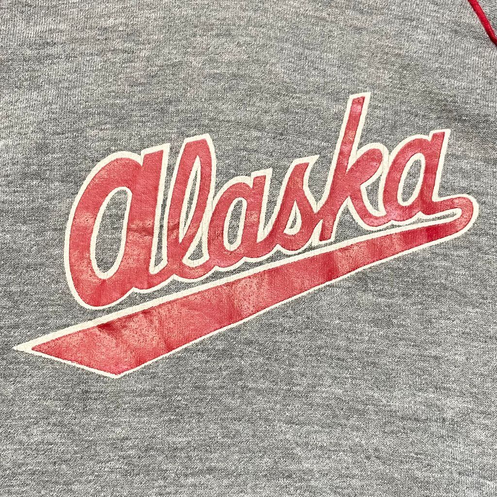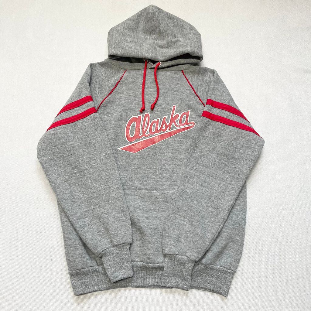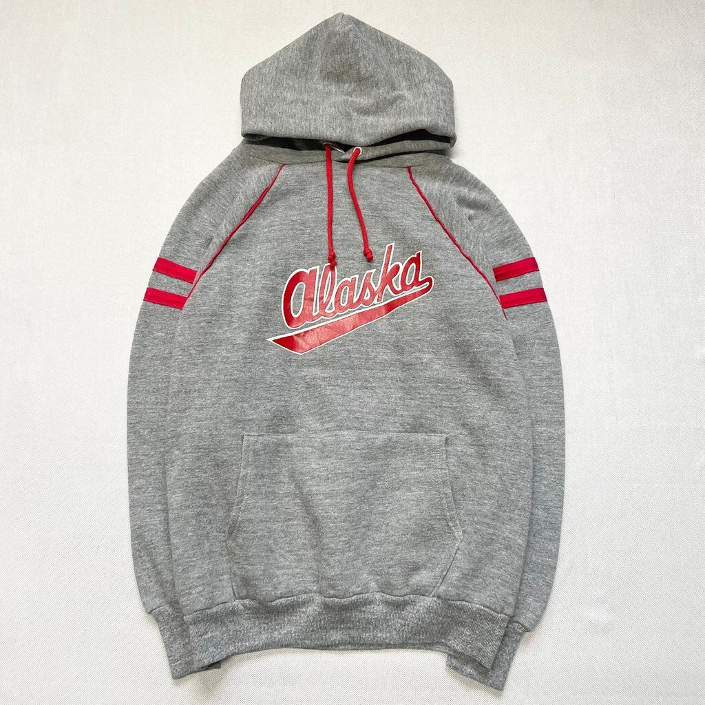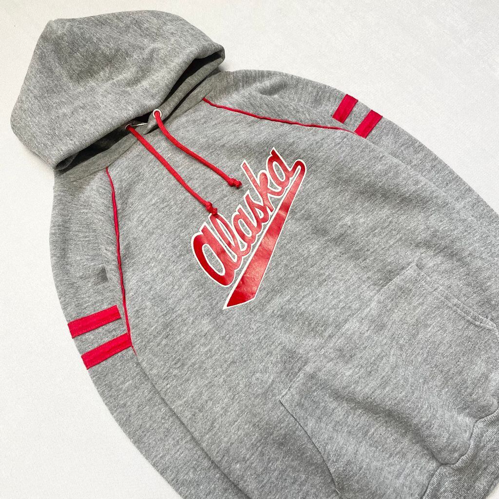 USA製 sportswear フーディー パーカー alaska ラグラン グレー×赤 Mサイズ No.F788