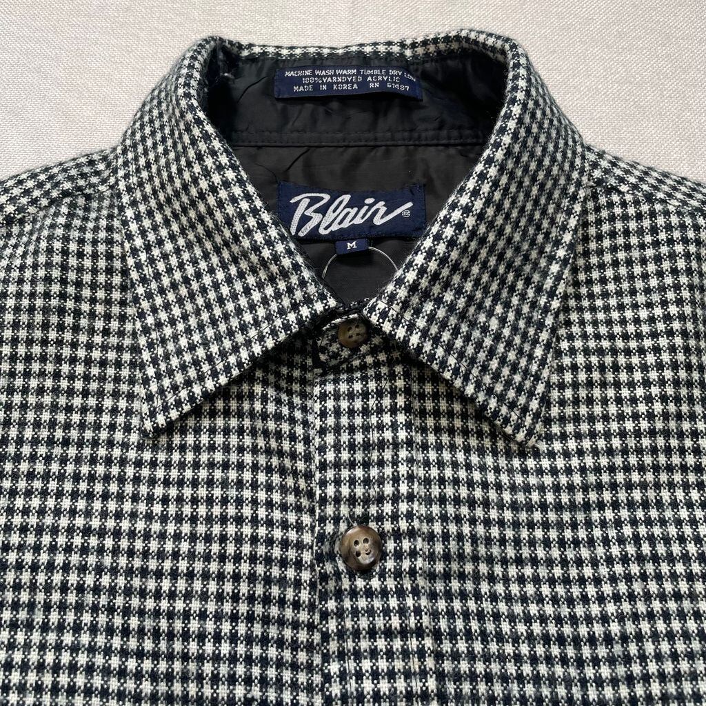 Blair シャツジャケット 千鳥格子 格子柄 ポケット付き 長袖シャツ 白×黒 Mサイズ No.F809