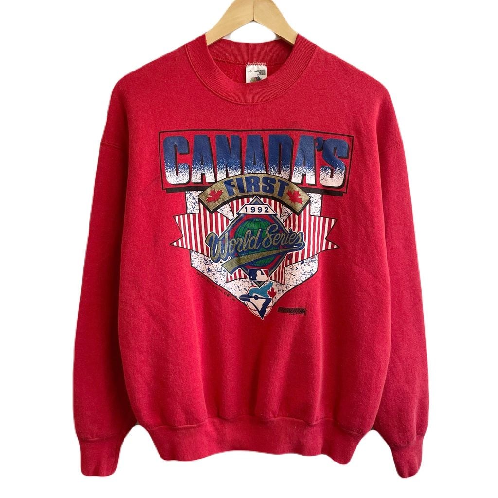90's FRUIT OF THE LOOM フルーツオブザルーム トレーナー スウェット MLB トロント ブルージェイズ チームスウェット 赤 Lサイズ No.U154