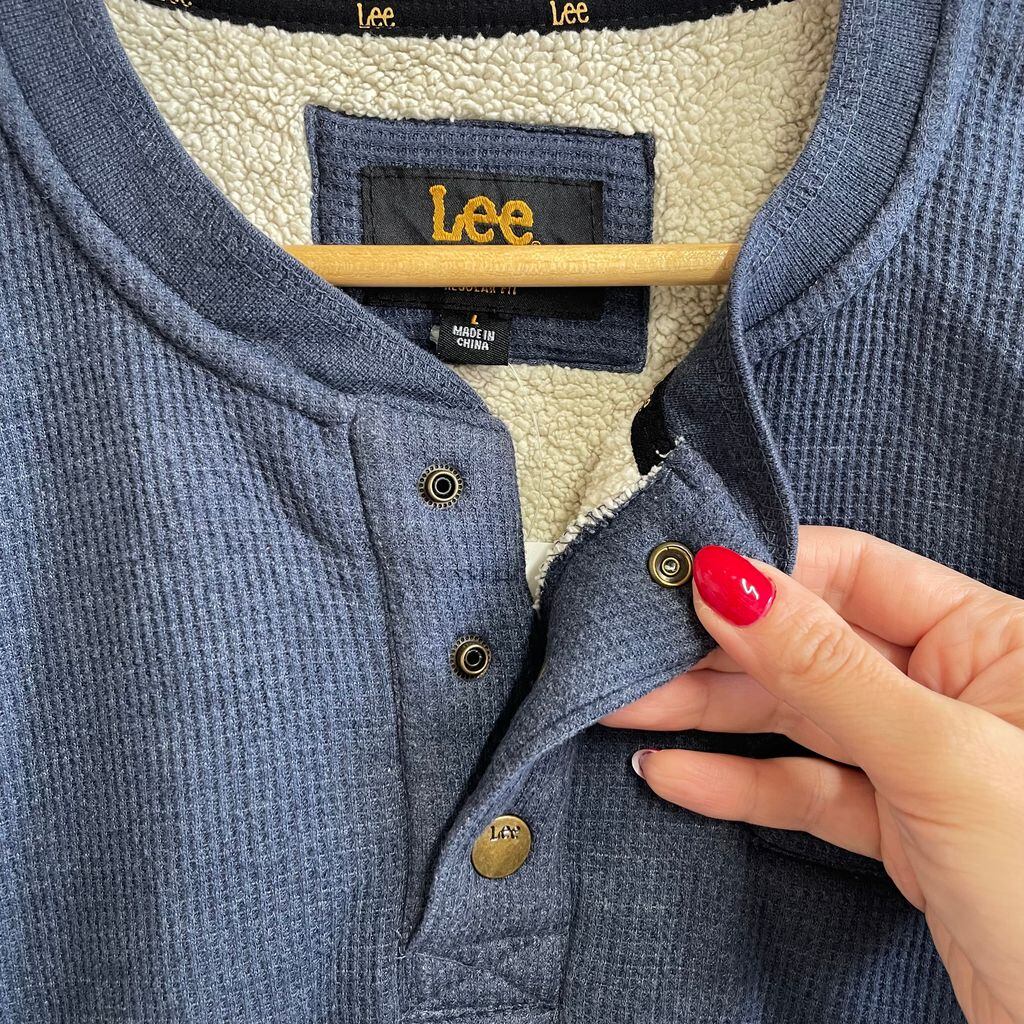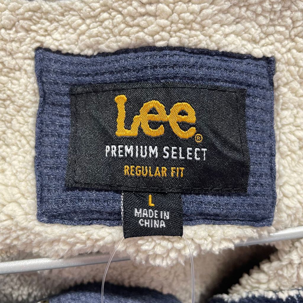 Lee リー プルオーバー ワッフル地 裏地ボア ハーフボタン ヘンリーネック ポケット付き 無地 紺 ネイビー Lサイズ No.U158