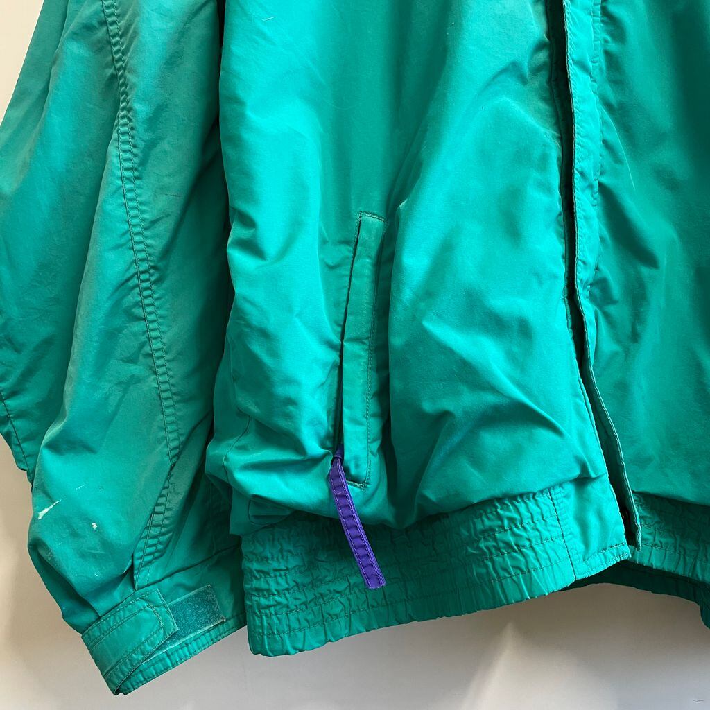 Columbia コロンビア ウィンドブレーカー マウンテンパーカー フードジャケット フルジップ ポケット付き 蛍光色 エメラルドグリーン×パープル 紫 XLサイズ No.U447