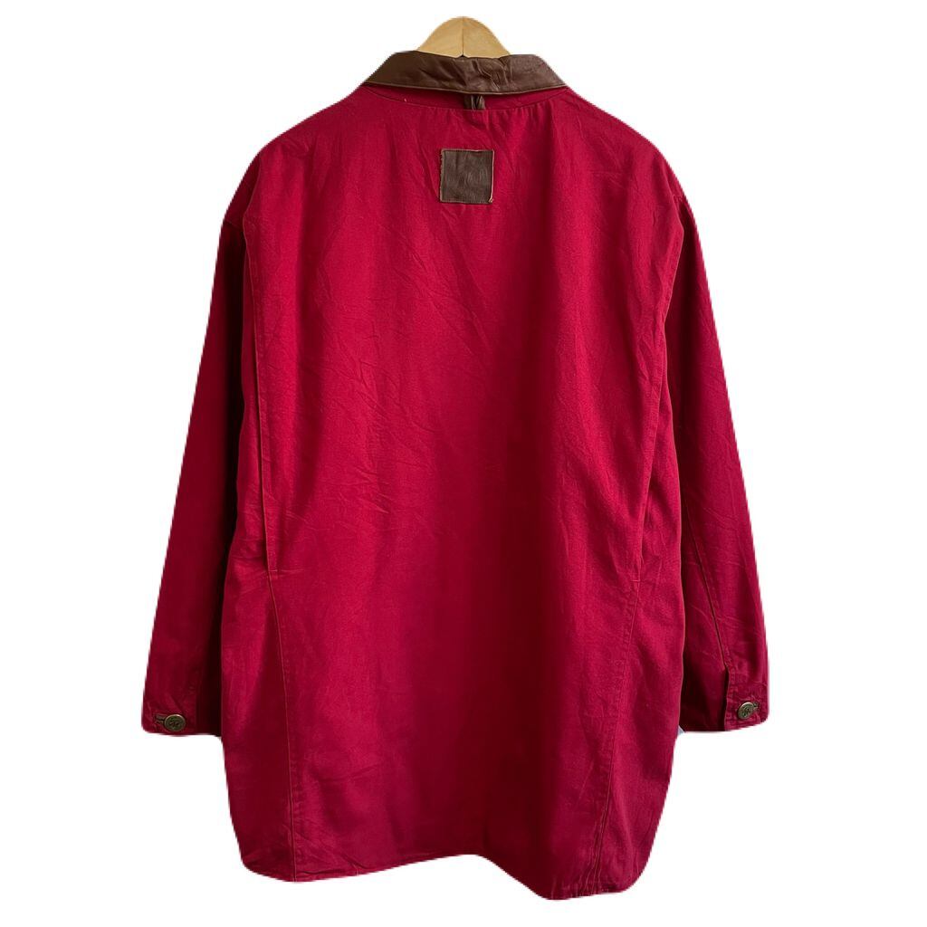 MARLBORO COUNTRY STORE ハーフコート コットンジャケット 襟レザー 裏地チェック ポケット付き 赤×茶 Mサイズ No.U462