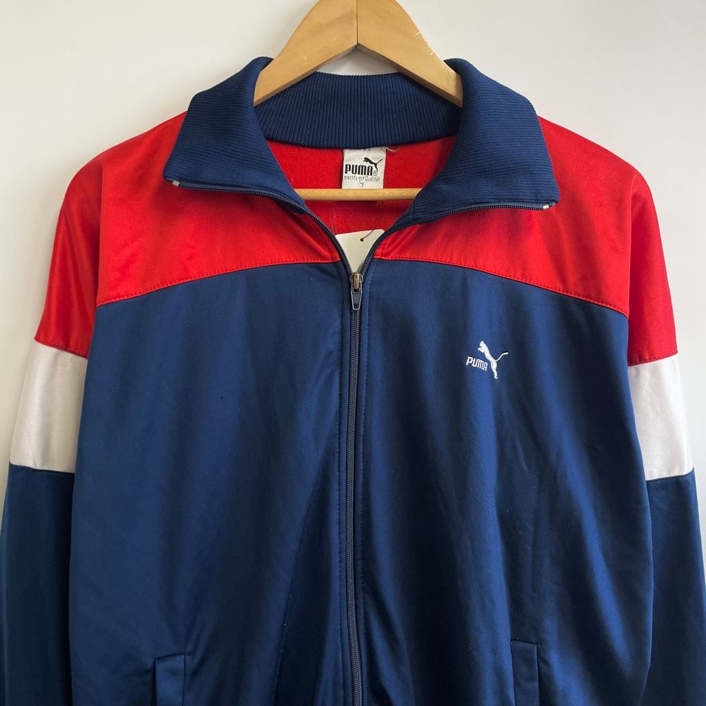 PUMA プーマ トラックジャケット ジャージ フルジップ ポケット付き ワンポイントロゴ 刺繍 トリコロールカラー 青×赤×白 サイズ7 No.U520