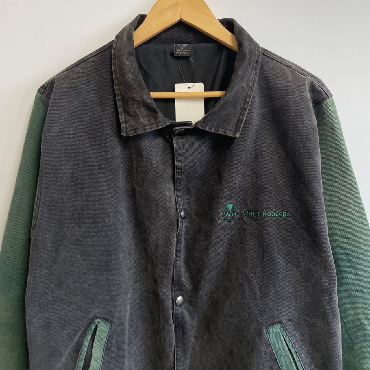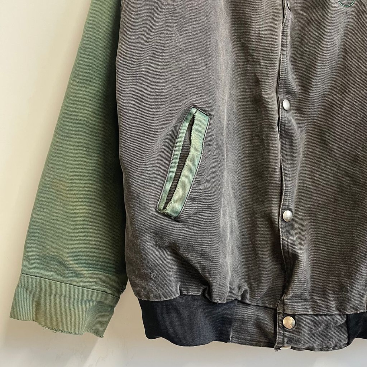 WHITE ROGGERS コットンジャケット デニムジャケット 切り替えデザイン スナップボタン チャコールグレー×緑×黒 Sサイズ No.U557