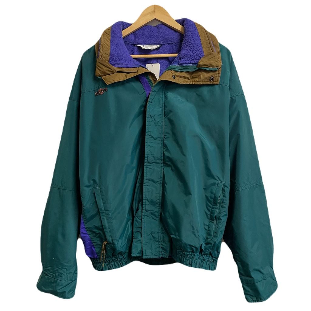 USA製 Columbia コロンビア アウトドアジャケット マウンテンジャケット ライニング フリース マルチカラー 緑×紫×茶 XLサイズ No.U560