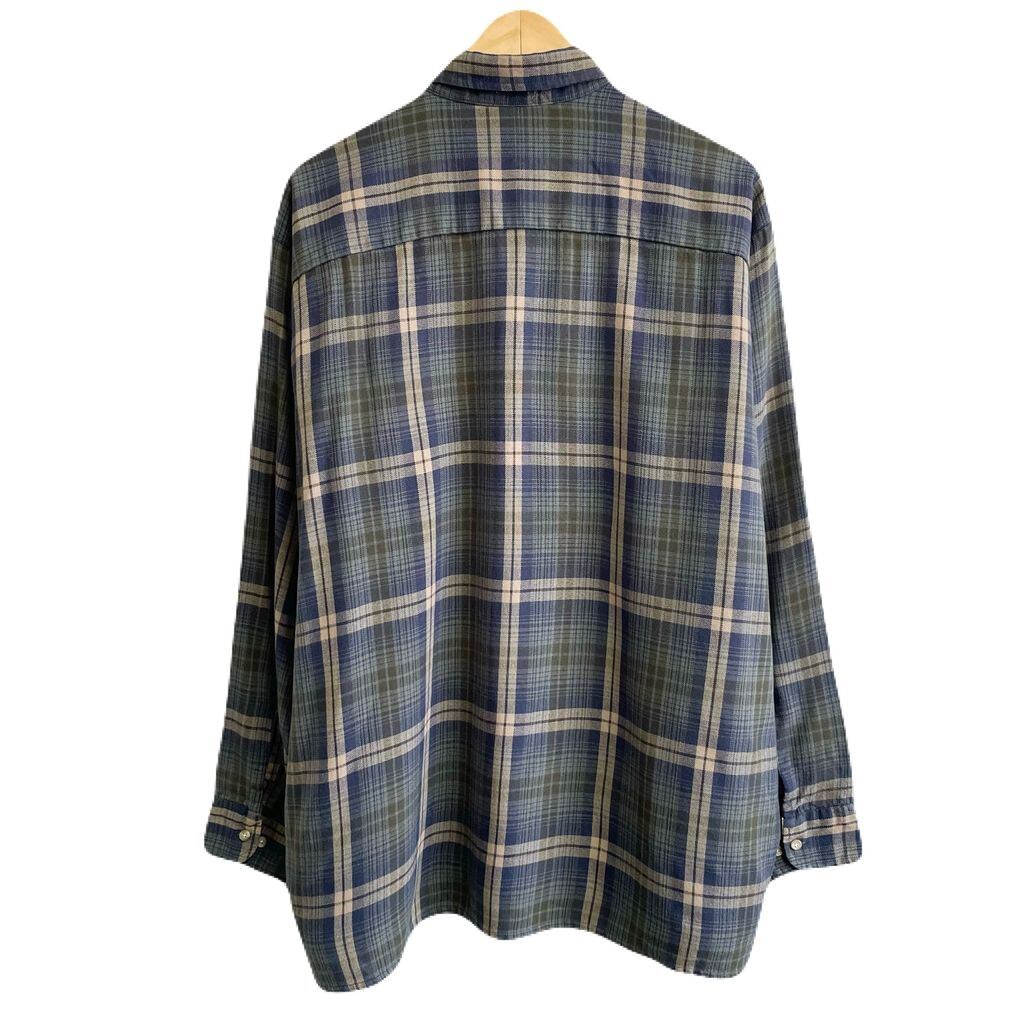 VAN HEUSEN ヴァンヒューゼン ボタンダウンシャツ チェック柄 ポケット付き 長袖シャツ 青×緑×カーキ×ベージュ XLTサイズ No.U799