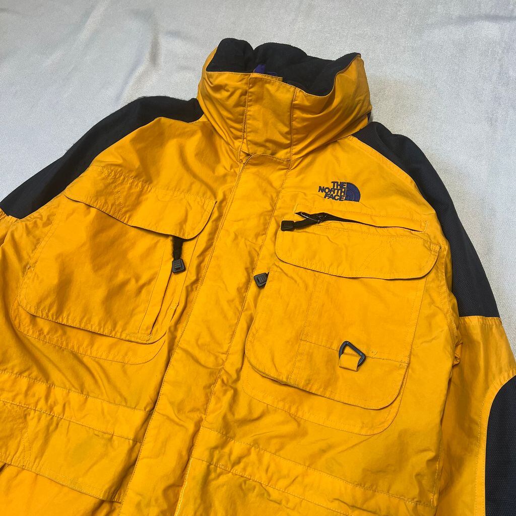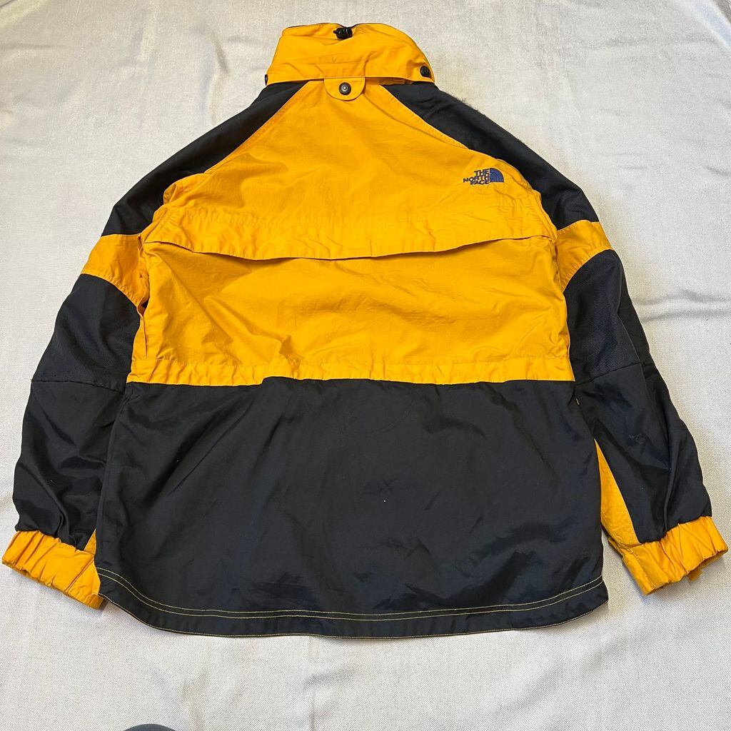 THE NORTH FACE マウンテンパーカー ノースフェイス フルジップアウター ナイロンジャケット ロゴ刺繍 イエロー ブラック フード付き No.A158