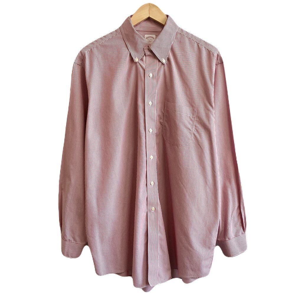 Brooks Brothers ブルックスブラザーズ ボタンダウンシャツ コットンシャツ ストライプ ポケット付き 長袖シャツ 赤×白 XXL程度 No.U822