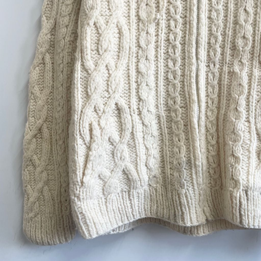 エクアドル製 Ecuador エクアドルニット ケーブルニット セーター カーディガン ニットパーカー フルジップ ポケット付き 白 ホワイト アイボリー No.U848