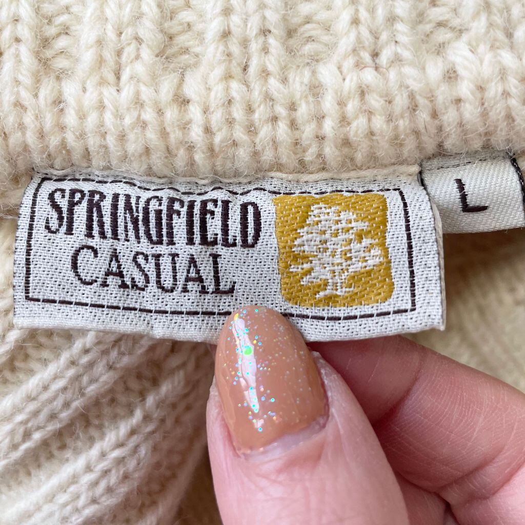 SPRINGFIELD ケーブルニット セーター タートルネック アイボリー 白 Lサイズ No.U852