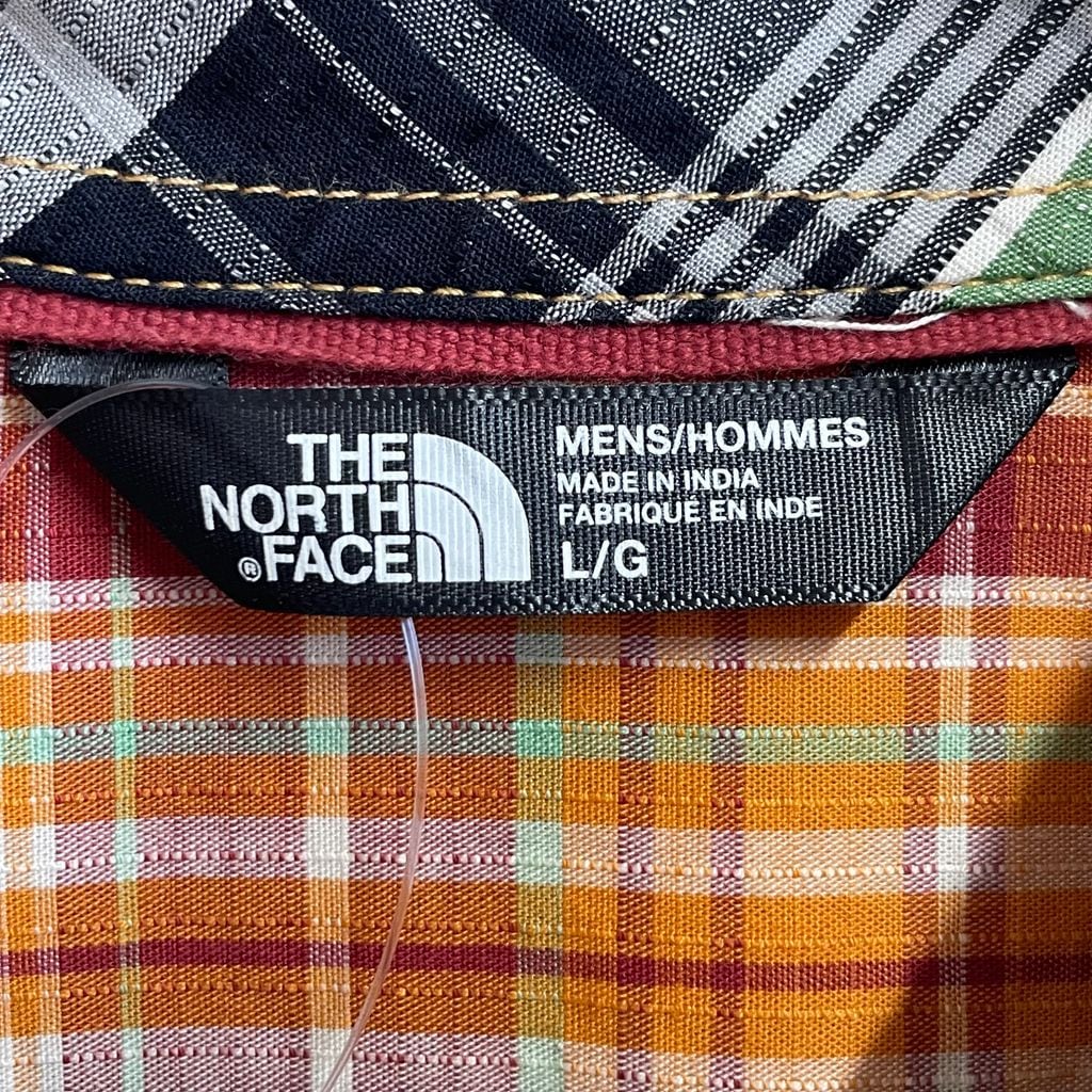 THE NORTH FACE ザノースフェイス コットンシャツ チェック柄 ポケット付き 長袖シャツ エンジ×オレンジ×黄緑×白 Lサイズ No.U902