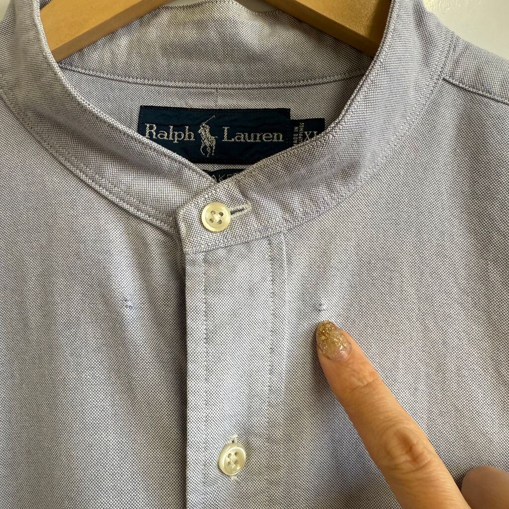 Ralph Lauren ラルフローレン バンドカラー コットンシャツ 無地 長袖シャツ ワンポイントロゴ 刺繍 水色 XLサイズ No.J023