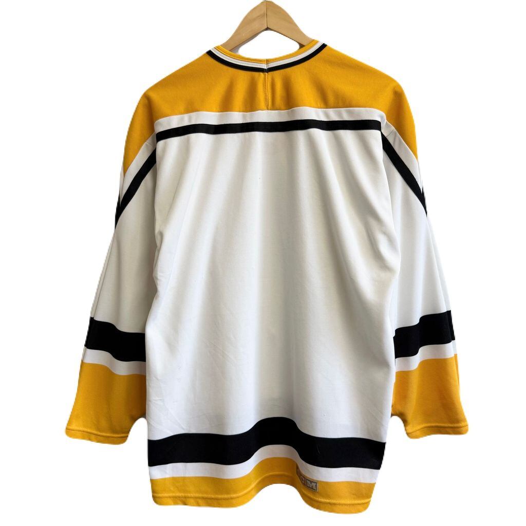 CCM ゲームシャツ ピッツバーグ ペンギンズ ワッペン 刺繍 白×黄色×黒 Lサイズ No.J030