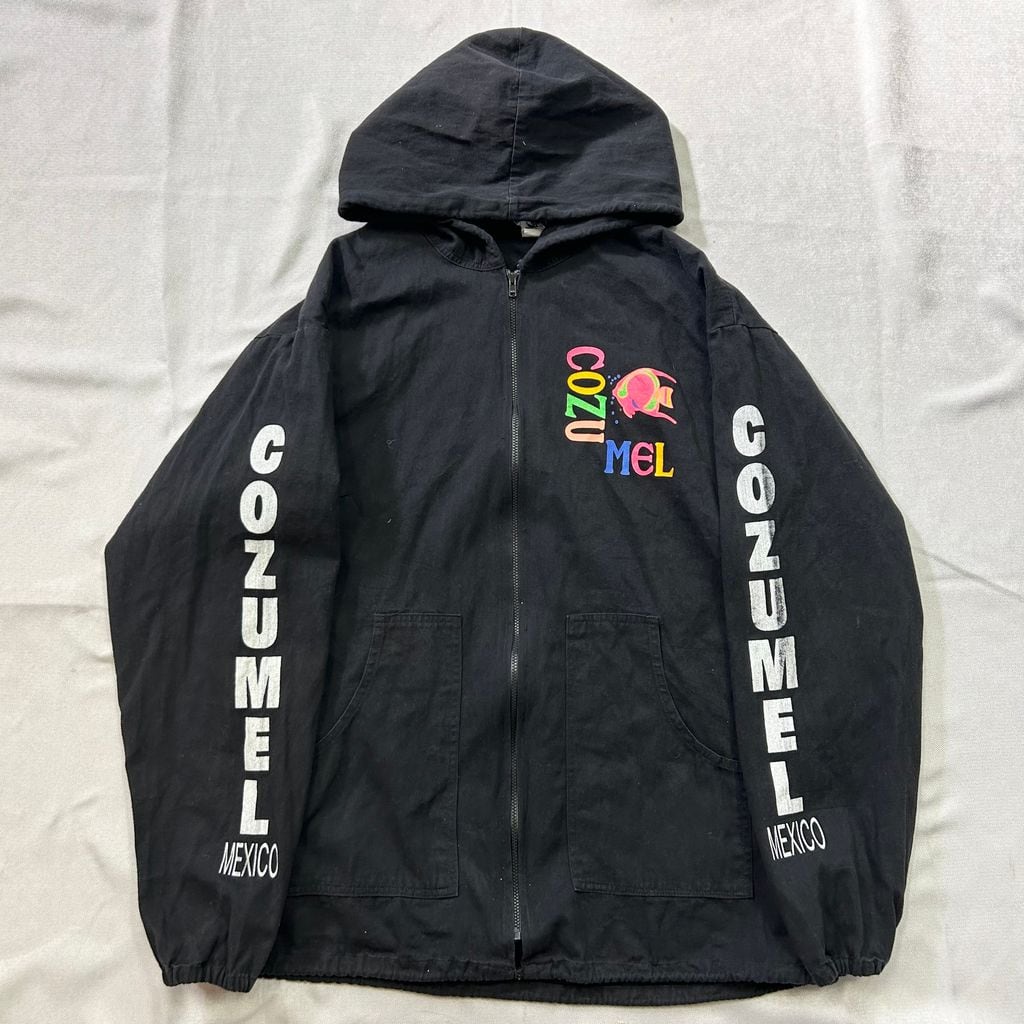 COZUMEL MEXICO 黒 フード フルジップパーカー 魚 XLサイズ No.B139