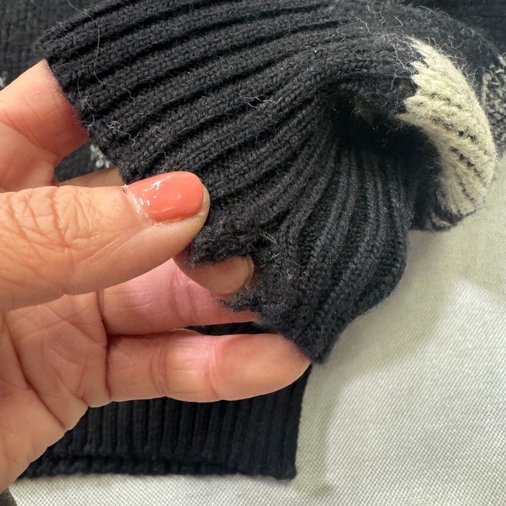 URUGUAY製 PRIMA MAGLIA WOOL ニット 総柄 ノルディック柄 黒×白 No.E317