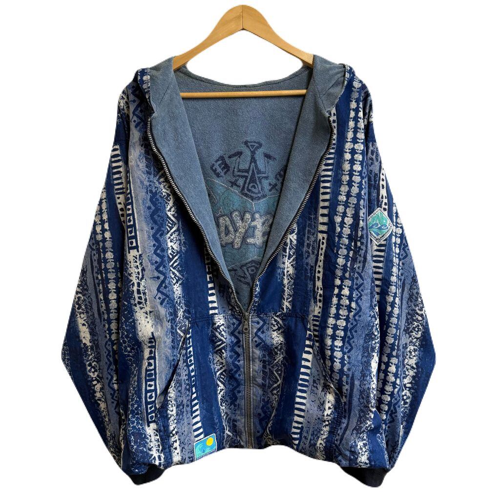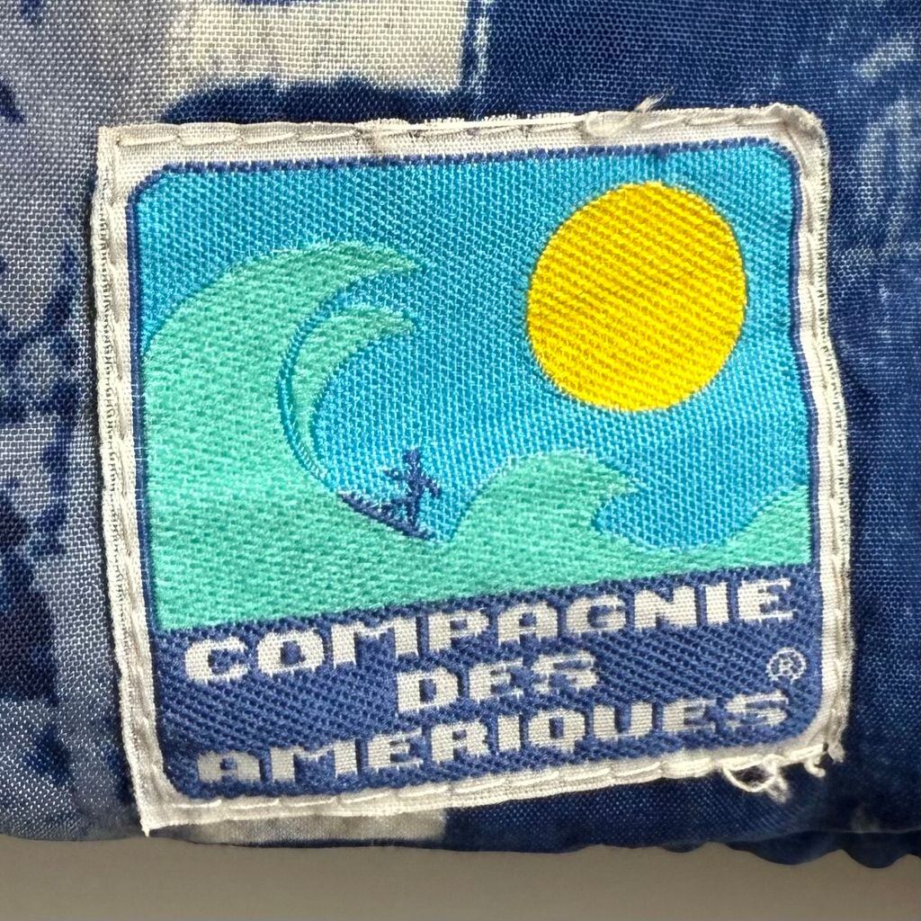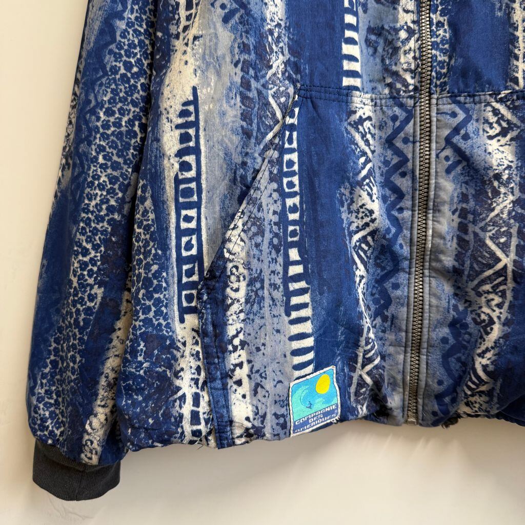 〜90's フランス製 COMPAGNIE DES AMERIQUES ブルゾン フードジャケット 柄ジャケット 総柄 パイル裏地 フルジップ ポケット付き 青×白 No.J146
